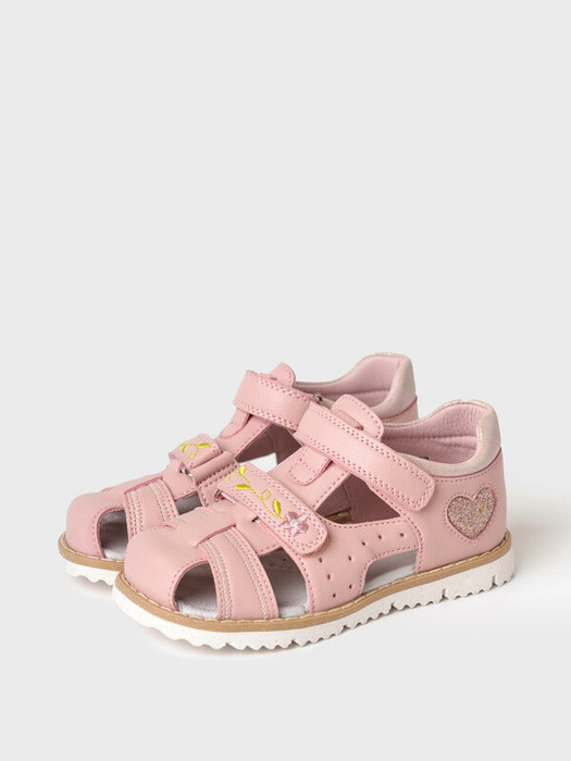 Сандалии для девочки с закрытой носочной и пяточной частью выполнены из искусственной кожи Удобные ремни с липучкой позволяют регулировать обувь на любой подъем и позволяют ребенку обуваться самостоятельно. Подкладка и стелька выполнены из натуральной кожи. Стелька имеет анатомический элемент для поддержания свода стопы в правильном положении. Подошва из ТПР легкая, гибкая и нескользкая. Парфюмированная подошва имеет запах жевательной резинки.