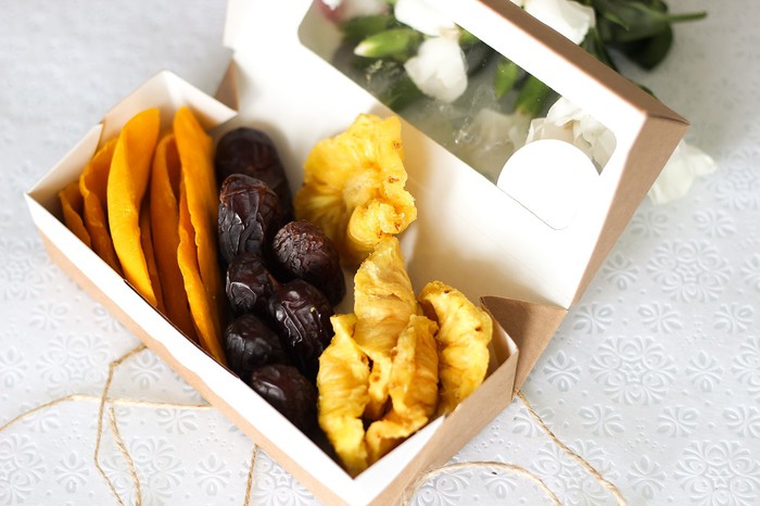 Состав: Состав: ананас вяленый, манго вяленый (Вьетнам), финики королевские