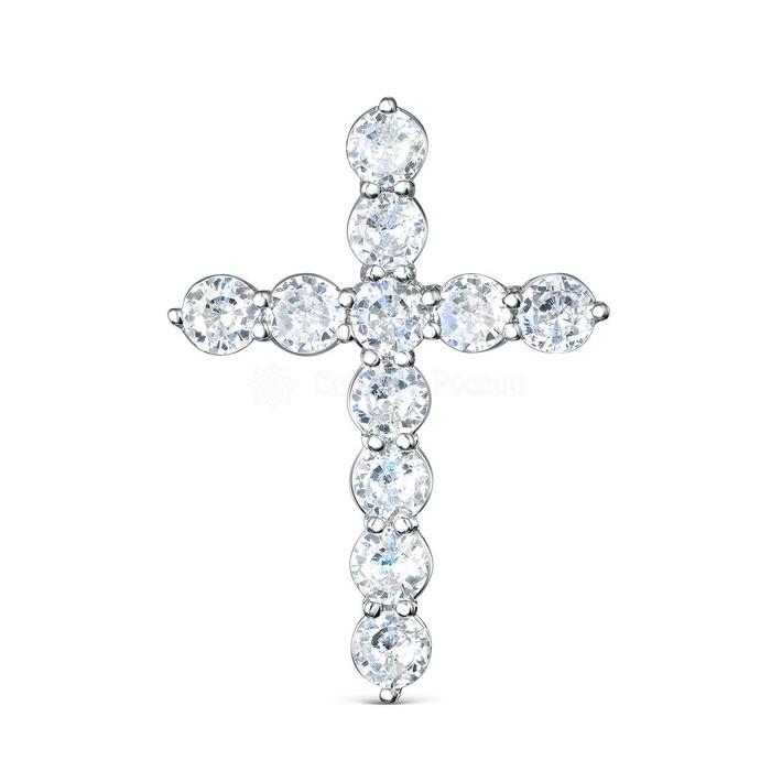 Подвеска крест из серебра с фианитами родированная