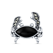 Брошь-подвеска из чернёного серебра с ониксом и марказитами - Краб 925 пробы HB0