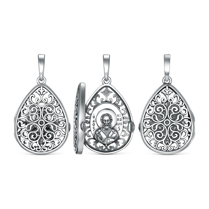 Подвеска-складень из чернёного серебра - Святой Николай Чудотворец ЛП-004чНЧ