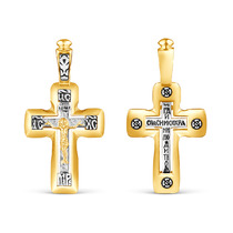 Крест православный из чернёного серебра с золочением - Спаси и сохрани, 3,9 см 0