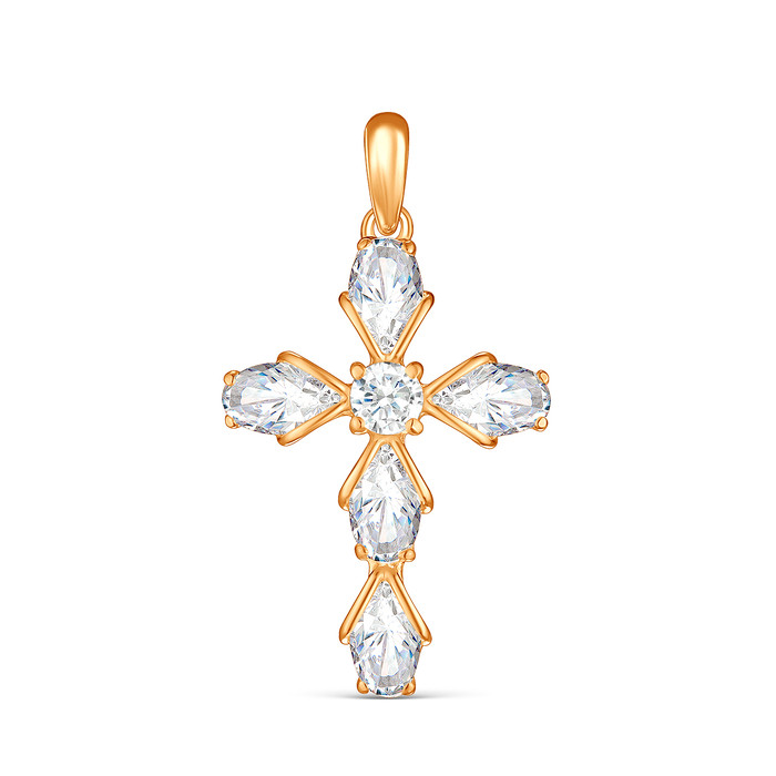 Подвеска в виде креста из золочёного серебра с фианитами 925 пробы S3180361010з