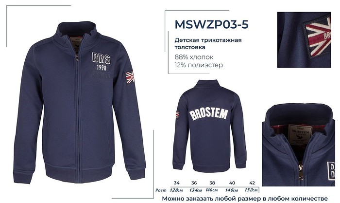Совместные покупки Курган Детская одежда Кофты, кардиганы — ПОШТУЧНО MSWZP03-5 Толстовка (кофта на молнии) детская для мальчиков BROSTEM