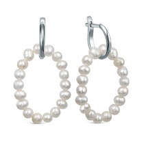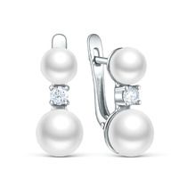 Серьги-трансформеры (2 в 1) из родированного серебра с белым пресноводным жемчуг