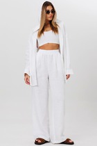Брюки 7/8 длины, зауженные к низу, с боковыми карманами, на поясе, спереди застегивается на молнию и потайные пуговицы.