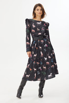 Таинственность великолепного чёрного платья не останется не замеченной. Она элегантно и лаконично, однако оригинальное исполнение выреза горловины со сложным геометрическим решением, делает образ очень эффектным. Полуприлегающий силуэт, втачной покрой. Полочка с рельефом, переходящим в вырез горловины. Спинка с центральным швом, разрезом и молнией, цельнокроённой стойкой и талиевой вытачкой.