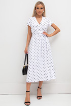 Платье прямого покроя. Модель сочетает в себе женственность и удобство. Горловина переда декорирована экокожей. По спинке платья складка, декорированная молнией.