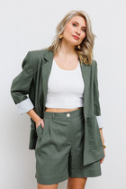 Спинка жакета неразрезная, спрямлена, легко и свободно держит форму.