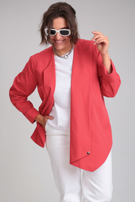Эта модель точно добавит изюминку в деловой образ! Модель полуприлегающего силуэта без застежки - отлично подходит для завершения стильного образа. Женственный классический пиджак оверсайз прямого кроя с асимметричными удлиненными передними полами. Выполнен из хлопковой ткани. Глубокий V-образный вырез оформлен отложным воротником. Рукава оформлены отворотом. Ассиметричный нижний край спереди - визуально стройнит. Достаточно свободный силуэт не сковывает движений. Шикарно будет с блузами и рубашками на работу, на учебу в школу, колледж, университет.
