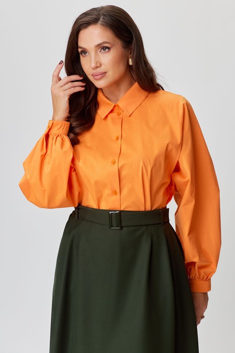 Блузка женская прямого силуэта с рубашечным воротником, с рукавом со сборкой по низу на притачном манжете, с застежкой по переду на петли пуговицы.