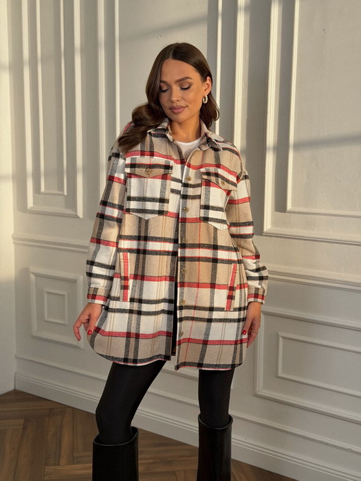 Совместные покупки Курган Женская одежда Блузки, рубашки — Рубашка DilanaVIP 2127 бежевая клетка