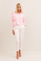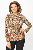 Блузка женская "оверсайз" прямого силуэта. Воротник отложной на стойке. Рукав спущенный с притачной широкой манжетой с отворотом. Манжет с акцентной пуговицей. Разрез рукава обработан планкой. Застежка по переду потайная, на пробивные петли и пришивные пуговицы.