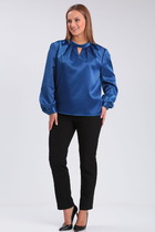 Блуза прямого свободного силуэта с рубашечным воротником на стойке и зауженным рукавом на манжете, со спущенной линией плеча. Акцентная фронтальная деталь: вертикально ассиметричная рюша. Сборка по центру рюши придает форму отделочной детали. Спереди на функциональной планке петли/пуговицы. Спинка изделия имеет горизонтальную плечевую кокетку и встречную складку для свободы облегания. По плечевому шву заложена складка. Низ блузона слегка фигурный: спинка и полочка чуть длиннее бокового шва. Длина изделия блузона по спинке 73,5 см. Рукав рубашечный одношовный,, завершается манжетой (высота 5 см) с застежкой петля/пуговица. Длина спущенного плечевого шва 33 см. Длина рукава с манжетой 41 см.