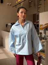 Рубашка женская джинсовая из вискозы (лёгкий деним) с характерным джинсовым плетением и мягким благородным блеском. Ткань струится, дышит и комфортна к телу, выглядит аккуратно весь день и не создаёт лишнего объёма. Свободный крой/оверсайз мягко скрывает нюансы фигуры — отличный вариант для работы, города и поездок.