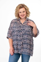 Стильная рубашка свободного кроя с центральной планкой на застежку пуговицы по полочке из ткани содержащей хлопок, со спущенной линией плеча. Изделие с горловиной стойкой. По переду рубашки накладные карманы. Рукав втачной двух шовный, в 12см от низа рукава кулисrа со втянутым в нее шнуром для затягивания. Спинка изделия с кокеткой и заложенной складкой. Низ рубашки фигурный с разрезами по боковым швам.