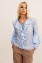 Рубашка (туника) женская из трикотажного полотна «флис» с набивным рисунком «клетка», свободного силуэта, с длинными втачными рукавами напритачных манжетах, стояче-отложным воротником, нагрудным карманом,фигурным низом и центральной бортовой застежкой на петли и пуговицы. Спинка – с отрезной кокеткой и бантовой складкой в центре соединительного шва.