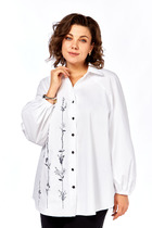 Рубашка прямого силуэта с притачной планкой с застёжкой на петли и пуговицы. Рукав втачной одношовный со спущенной линией плеча с патой. Воротник рубашечный стояче-отложной. Перед состоит из трёх частей : центральная часть ,верхняя часть и нижняя часть. Спинка состоит из двух частей . Линия низа фигурная с широкой окантовкой.