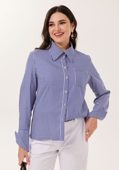 Совместные покупки Курган Женская одежда Блузки, рубашки — Рубашка Твой Имидж 2184 синий в полоску