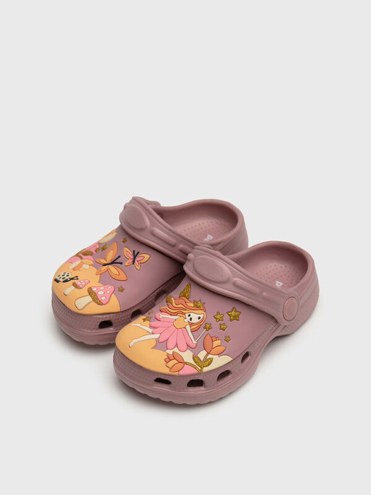 Сабо детские для девочки. Сабо из облегченного и прочного ЭВА. Материал хорошо моется. Объемный рисунок на правой и левой полупарах рассказывают нам целую историю из мира фей. Форма модели учитывает эргономику стопы. Модель имеет перекидной ремешок для лучшей фиксации обуви на ноге. Благодаря вентиляционным отверстиям сабо проветриваются, ноги ребенка дышат и не потеют.