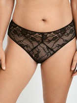 Трусики Tanga со средней посадкой из эластичного рибового полотна в вертикальный рубчик. Эластичная окантовка по краю ножек, ластовица из хлопка. Брендированная резинка по талии.