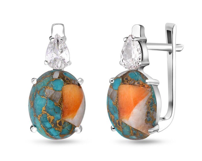Серьги, арт.656591 Серебро Серебро 925, 3,03 гр., бирюза устричная голубая