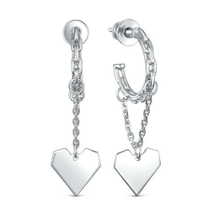 Совместные покупки Курган Ювелирные украшения и бижутерия Серьги — Серьги цепи из серебра родированные - Сердца 925 пробы 220-10-023р