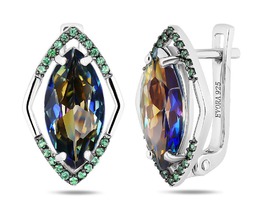 Серьги, мистик кварц синий , наноизумруд, Камея