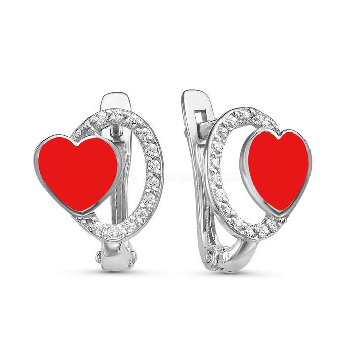 Совместные покупки Курган Детские аксессуары Украшения, бижутерия — Серьги детские из родированного серебра с эмалью и фианитами - Сердечки 925 проб