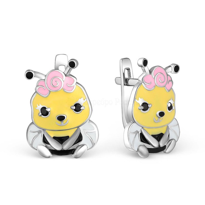 Серьги детские из серебра с эмалью и фианитами родированные 925 пробы спч-00р216