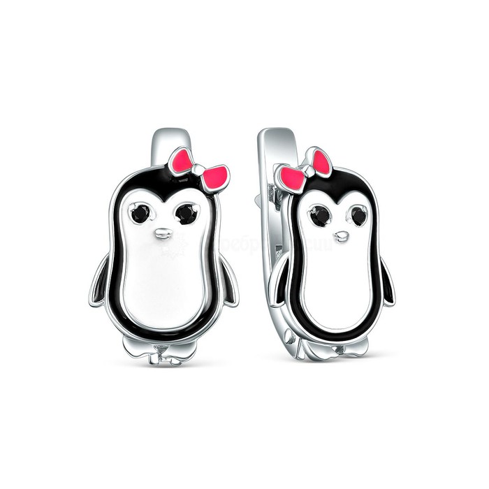 Совместные покупки Курган Детские аксессуары Украшения, бижутерия — Серьги детские из серебра с эмалью и фианитами родированные - Пингвины 925 пробы