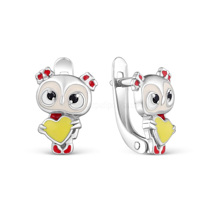 Совместные покупки Курган Детские аксессуары Украшения, бижутерия — Серьги детские из серебра с эмалью и фианитами родированные - Совы 5112эр