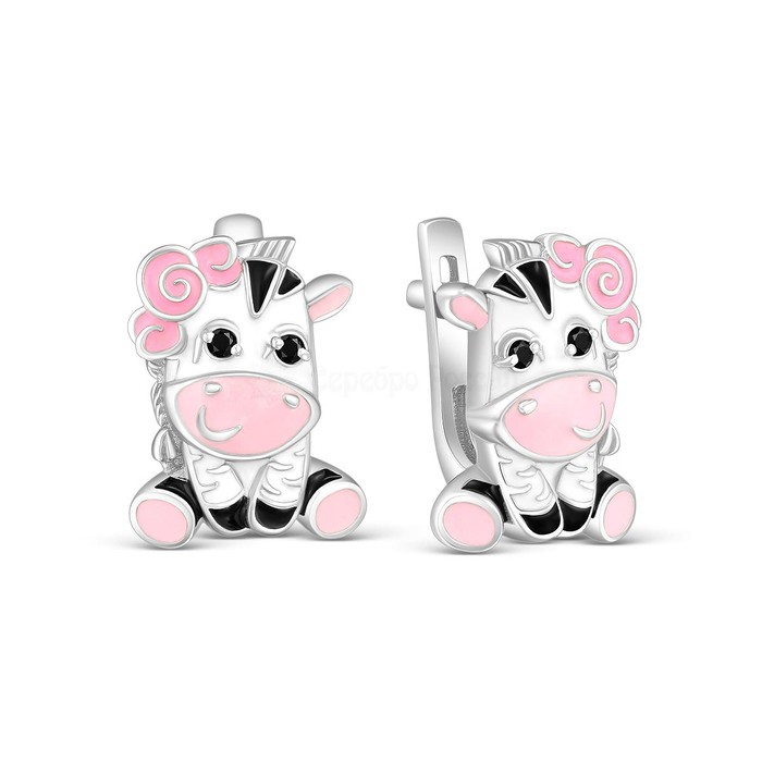 Серьги детские из серебра с эмалью и фианитами родированные - Зеброчки