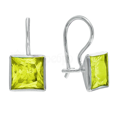 Серьги детские из серебра с фианитами родированные 925 пробы дс-005 оливковый