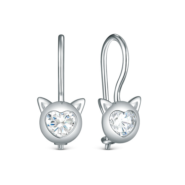 Совместные покупки Курган Ювелирные украшения и бижутерия Серьги — Серьги детские из серебра с фианитами родированные - Кошки S2180581010