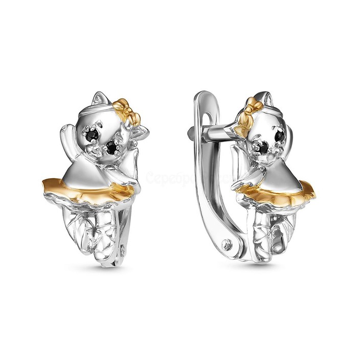 Совместные покупки Курган Детские аксессуары Украшения, бижутерия — Серьги детские из серебра с позолотой родированные - Кошки