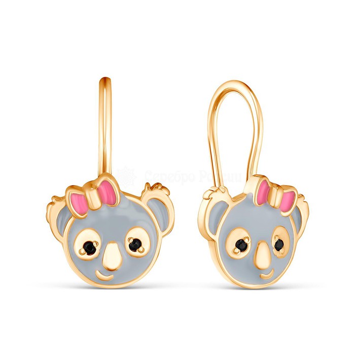 Серьги детские из золочёного серебра с эмалью и фианитами - Коалы