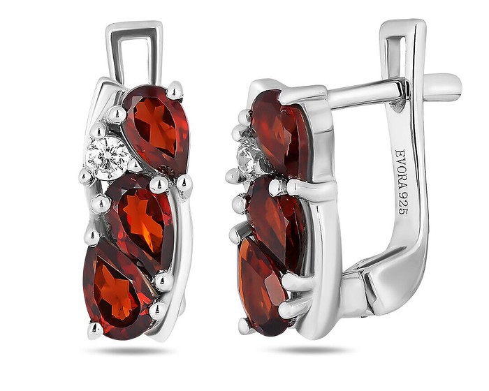 Серьги, арт.618743 Серебро Серебро 925, 3,2 гр., гранат