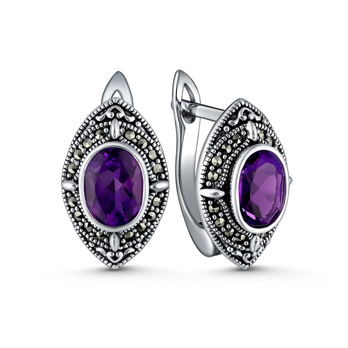 Совместные покупки Курган Ювелирные украшения и бижутерия Серьги — Серьги из чернёного серебра с натуральным аметистом и марказитами 925 пробы HE17