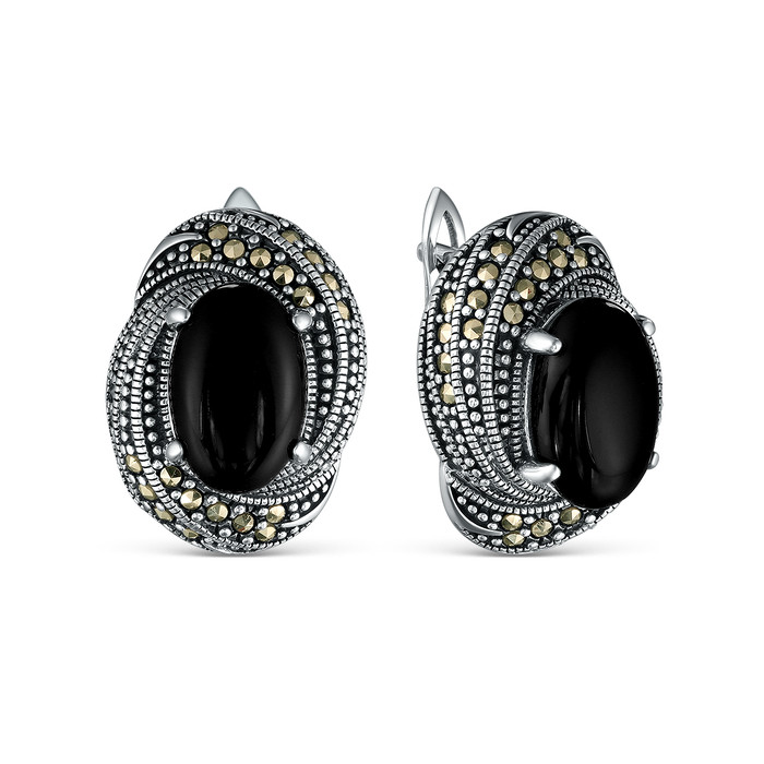 Совместные покупки Курган Ювелирные украшения и бижутерия Серьги — Серьги из чернёного серебра с натуральным ониксом и марказитами 925 пробы HE1105