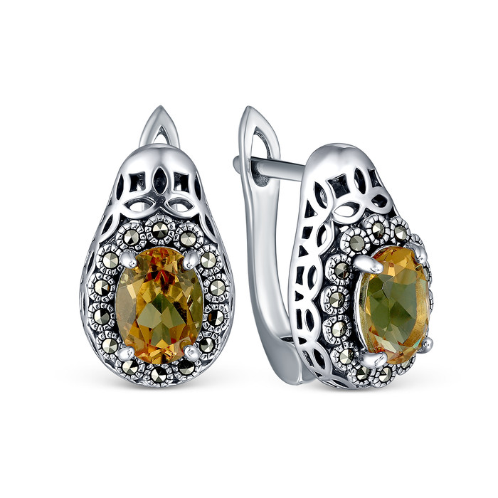 Серьги из чернёного серебра с султанитом и марказитами 925 пробы HE1661-ZN-LK