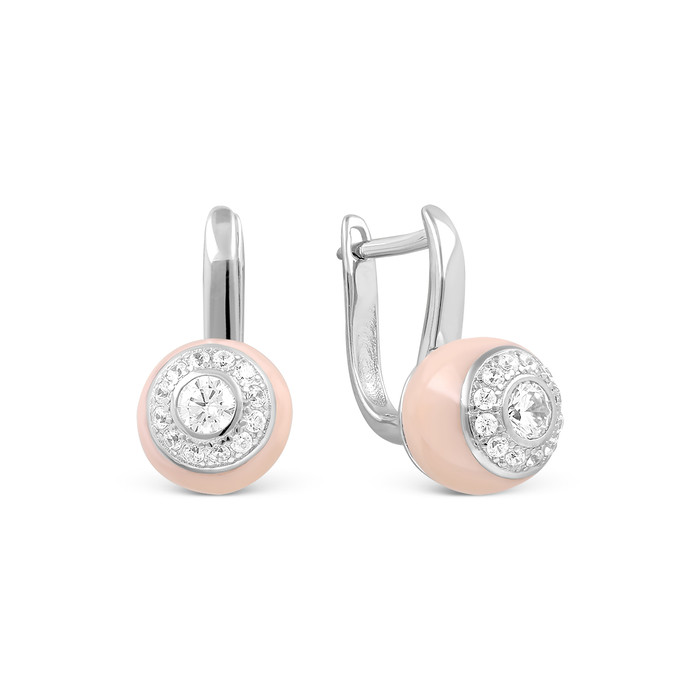 Серьги из родированного серебра с куб.цирконием и керамикой 925 пробы CTX-E020-1