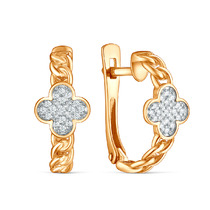 Серьги из золочёного серебра с родированием и фианитами - Клевер, четырёхлистник