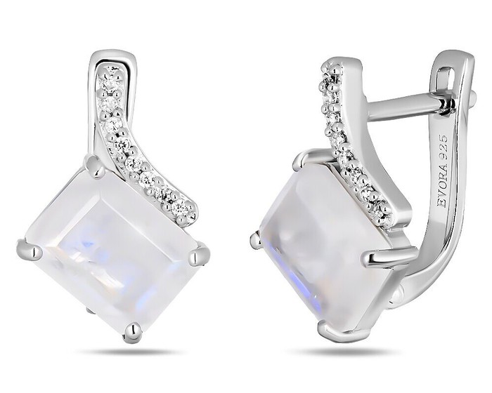 Серьги, арт.648377 Серебро Серебро 925, 3,75 гр., лунный камень