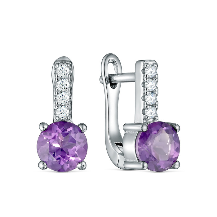 Совместные покупки Курган Ювелирные украшения и бижутерия Серьги — Серьги из серебра с аметистом и кубическим цирконием родированные 925 пробы GTE-