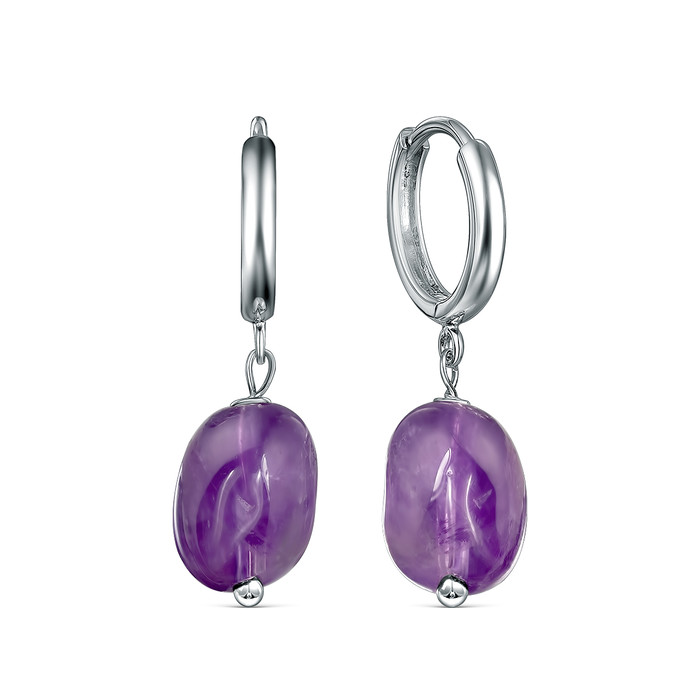 Серьги из серебра с аметистом родированные 925 пробы 13982AMRH