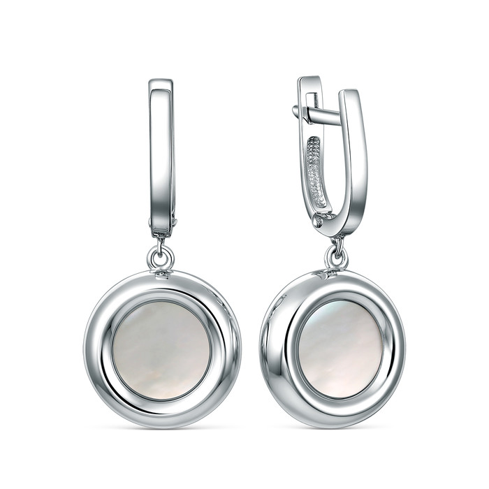 Серьги из серебра с белым перламутром родированные 221-10-288р