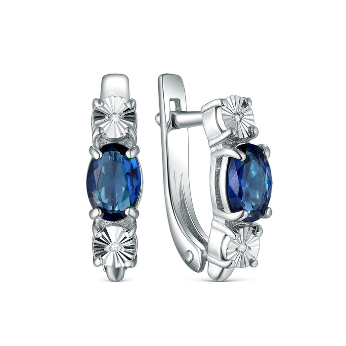 Серьги из серебра с бриллиантами и плавленым кварцем родированные 925 пробы 2-43