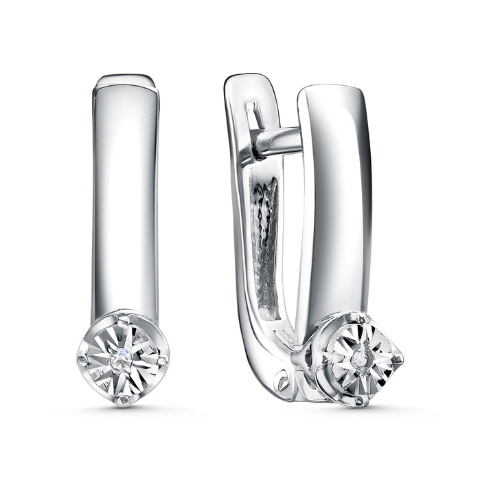 Серьги из серебра с бриллиантом родированные 925 пробы 12-0666