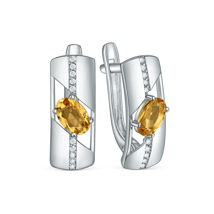 Серьги из серебра с цитрином и фианитами родированные 2-3906-001